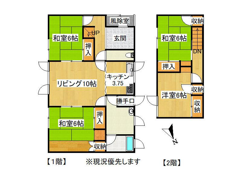 3LDK with garage in a quiet residential area, with a large park nearby and schools within walking distance.