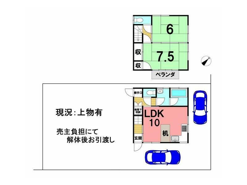 □This property includes a used house and an adjacent old house on the west side, which will be demolished at the seller's expense before handover. The used house will be handed over in its current condition. □The road in front of this property is a road under Article 42, Paragraph 2 of the Building Standards Act, so a setback will be required for rebuilding or renovations. □There is space for one regular car in the carport and one regular car in the parking space.