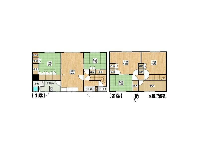3LDK with garage in a quiet residential area, with a large park nearby and schools within walking distance.