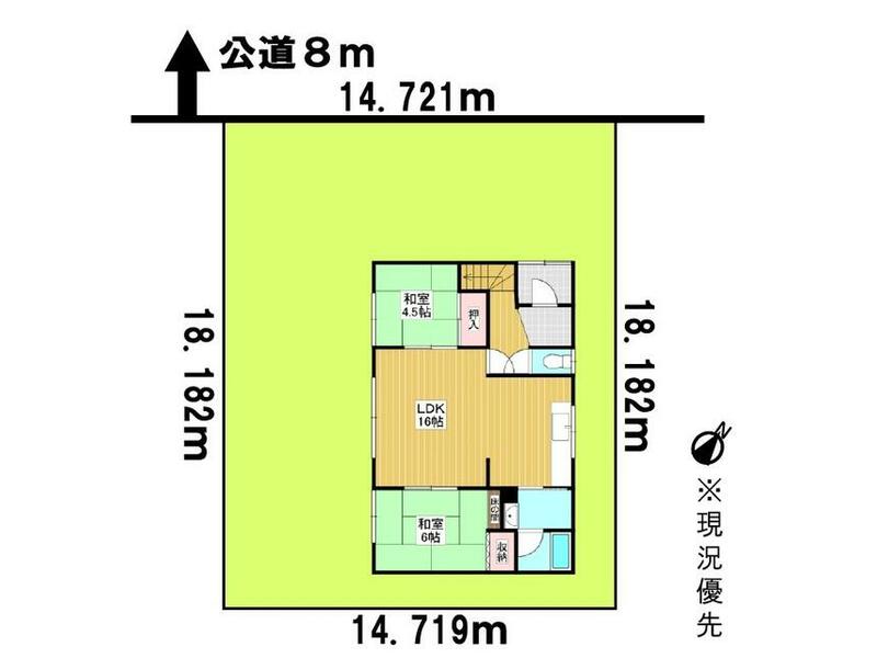 3LDK with garage in a quiet residential area, with a large park nearby and schools within walking distance.