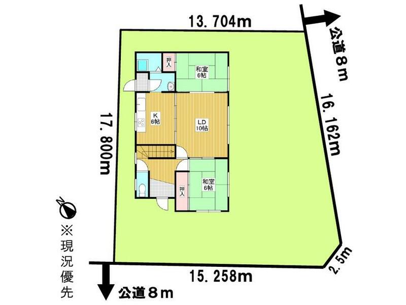 3LDK with garage in a quiet residential area, with a large park nearby and schools within walking distance.