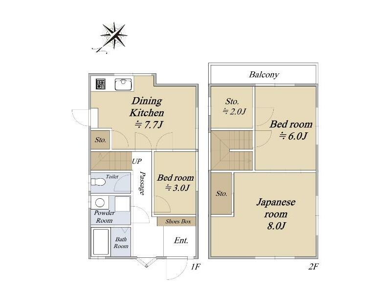 Kawasaki City, Miyamae Ward, Nishinogawa 3-chome (Kajigaya Station) 2-story 3SDK