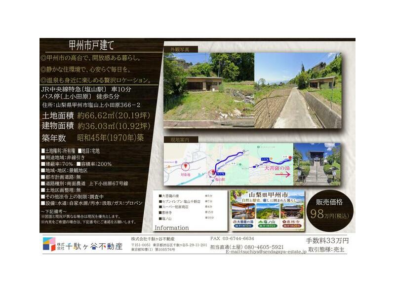 Koshu City, Enzan Kamikodawara (Enzan Station) Single-story building 2DK