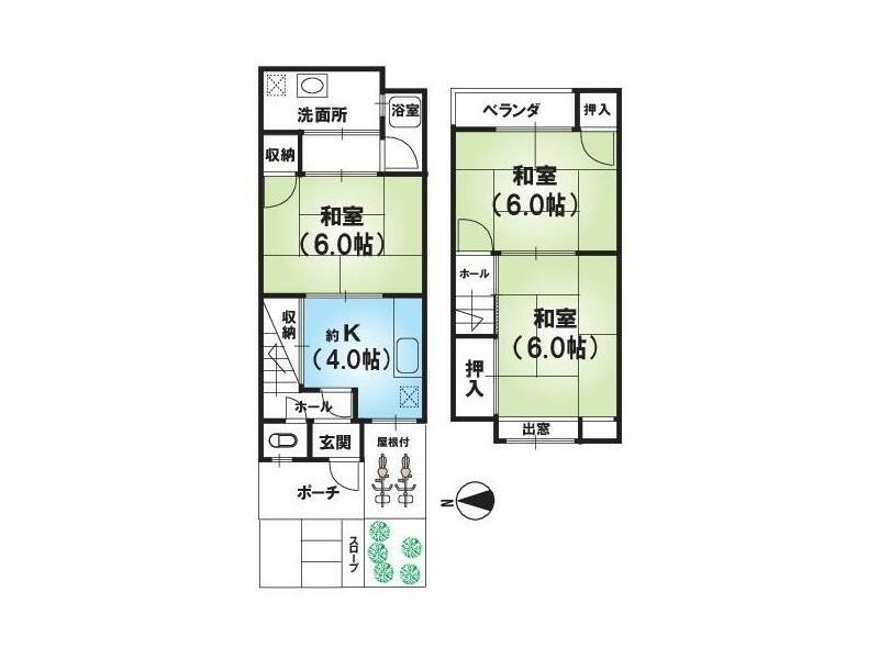 Oaza Ide-ko Hirayama, Ide-cho, Tsuduki-gun (Yamashiro-Taga Sta.) 2F 3DK 1,950,000 yen