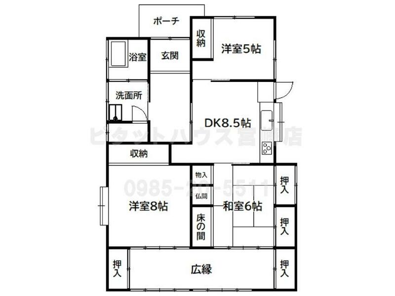 Miyazaki City, Kanao Ko, Kiho Town (Kiho Station) Single-story building 3DK