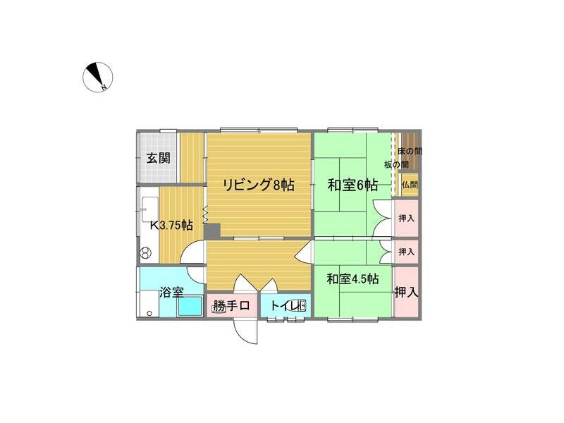 3LDK with garage in a quiet residential area, with a large park nearby and schools within walking distance.