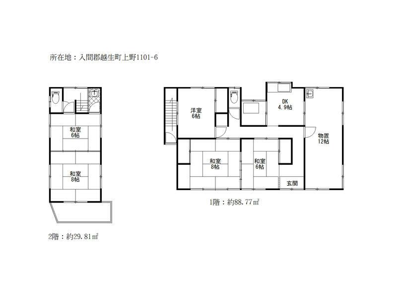 Oaza Ueno, Koshu-cho, Iruma-gun (Bushu Karasawa Sta.) 2F 5SDK 3.9 million yen