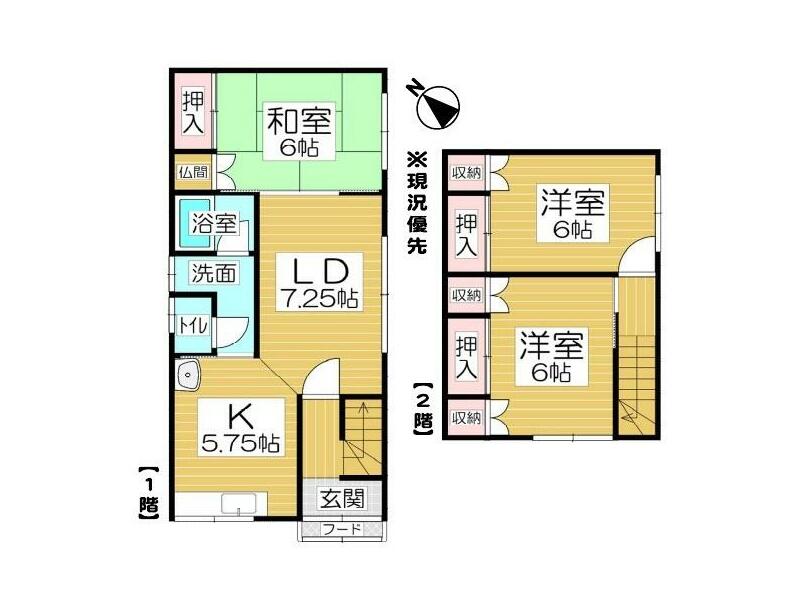 3LDK with garage in a quiet residential area, with a large park nearby and schools within walking distance.