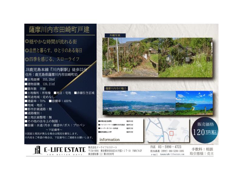 Satsumasendai City, Tazaki Town (Kawauchi Station) Single-story building 2DK