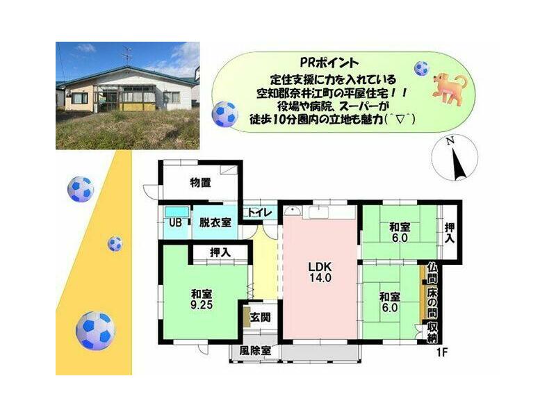 3LDK with garage in a quiet residential area, with a large park nearby and schools within walking distance.