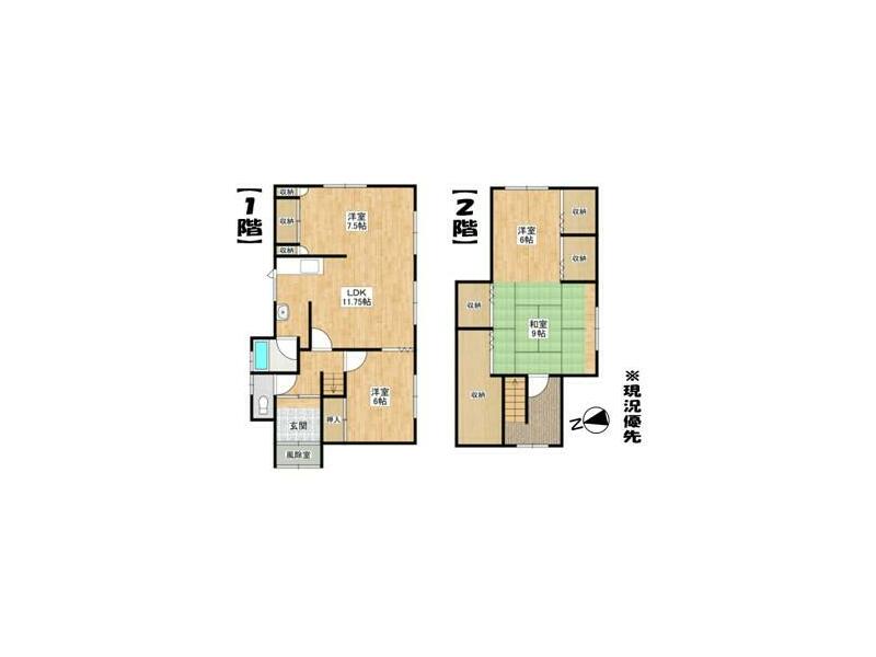 3LDK with garage in a quiet residential area, with a large park nearby and schools within walking distance.