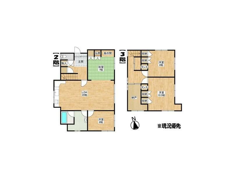 3LDK with garage in a quiet residential area, with a large park nearby and schools within walking distance.